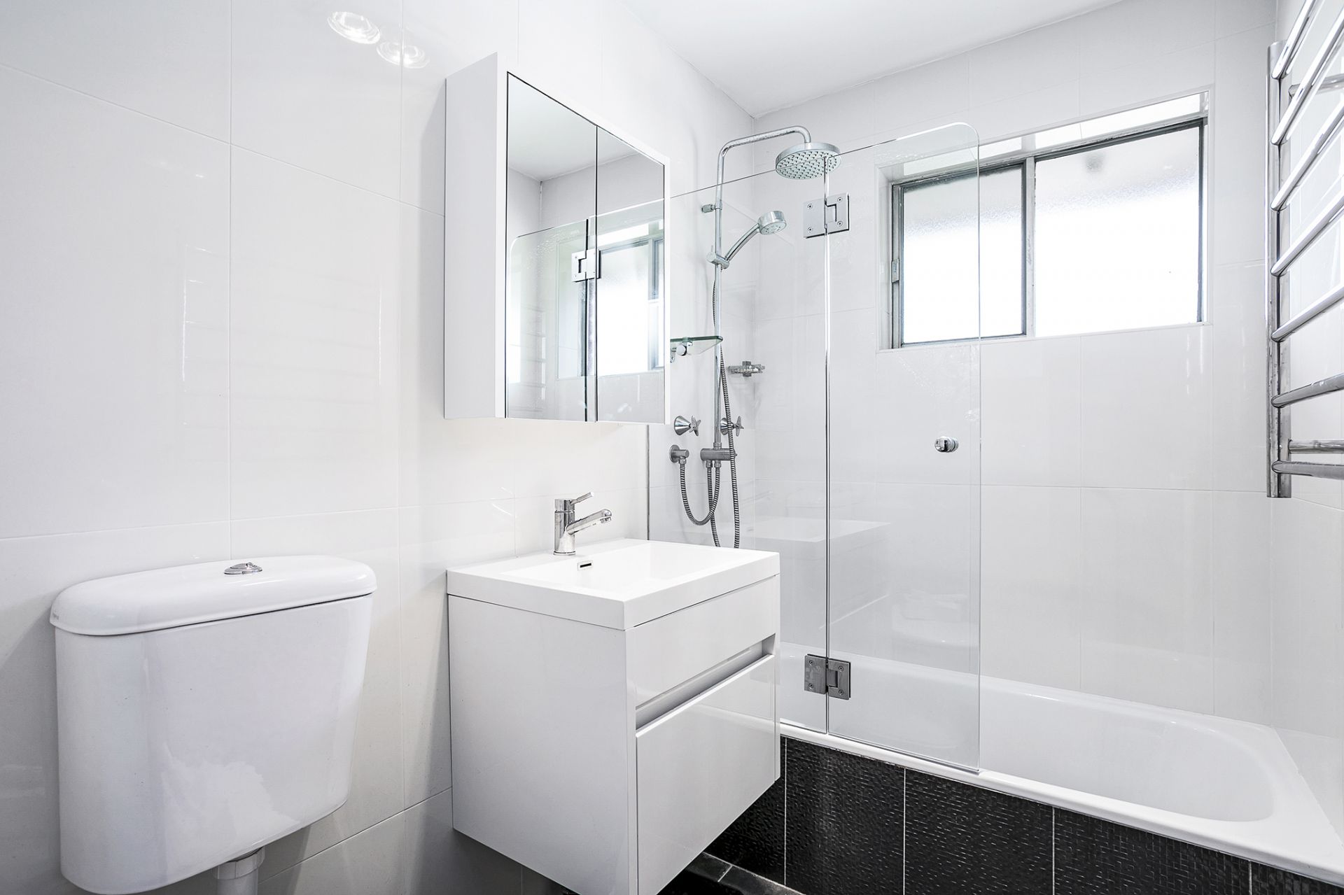 - Spacious newly renovated bathroom with bath tub