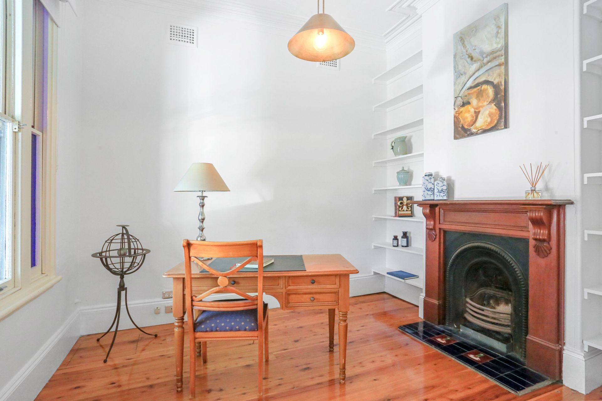 - Period Features, Fireplace, high ceilings and timber floors