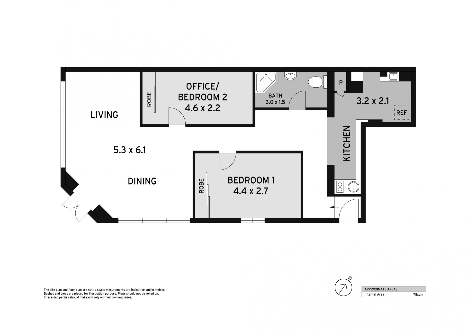Two bedrooms include a second bedroom/study with built-in storage